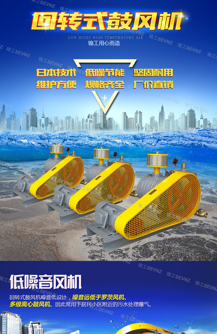 回轉式風機是變容壓縮,其主要特點是:低轉速,低噪音,低振動,高效率,高節能。