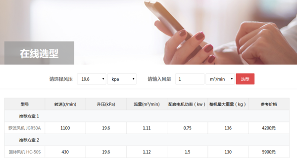 此外,還可以通過風機選型系統查詢回轉風機價格,如下圖客戶僅需輸入風量、選擇風壓,就可以方便、快速、準確、可靠地進行羅茨鼓風機、回轉式鼓風機等各類容積式風機的選型和價格查詢工作。風機選型系統地址:http://www.tuqubang.com/search.php